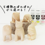大まかに削られたぽれぽれ動物をサンドペーパーでヤスリがけをしてなめらかにし、アクリル絵の具で好きな色にペイントして、オリジナルのぽれぽれ動物に仕上げます。