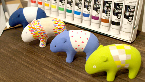 ▼スタッフで製作したバクたちです。色や柄、顔などお好きにペイントして下さいね。